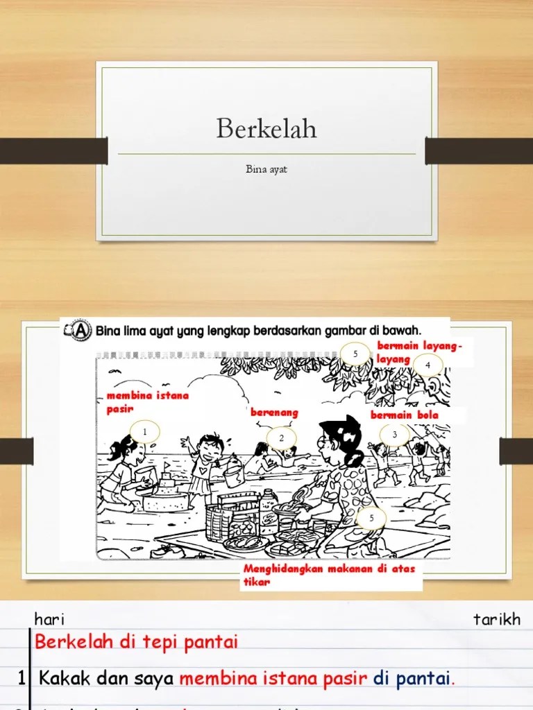 Bina ayat berdasarkan gambar berkelah di tepi pantai. C.poomagal sjkt bestari jaya 1.