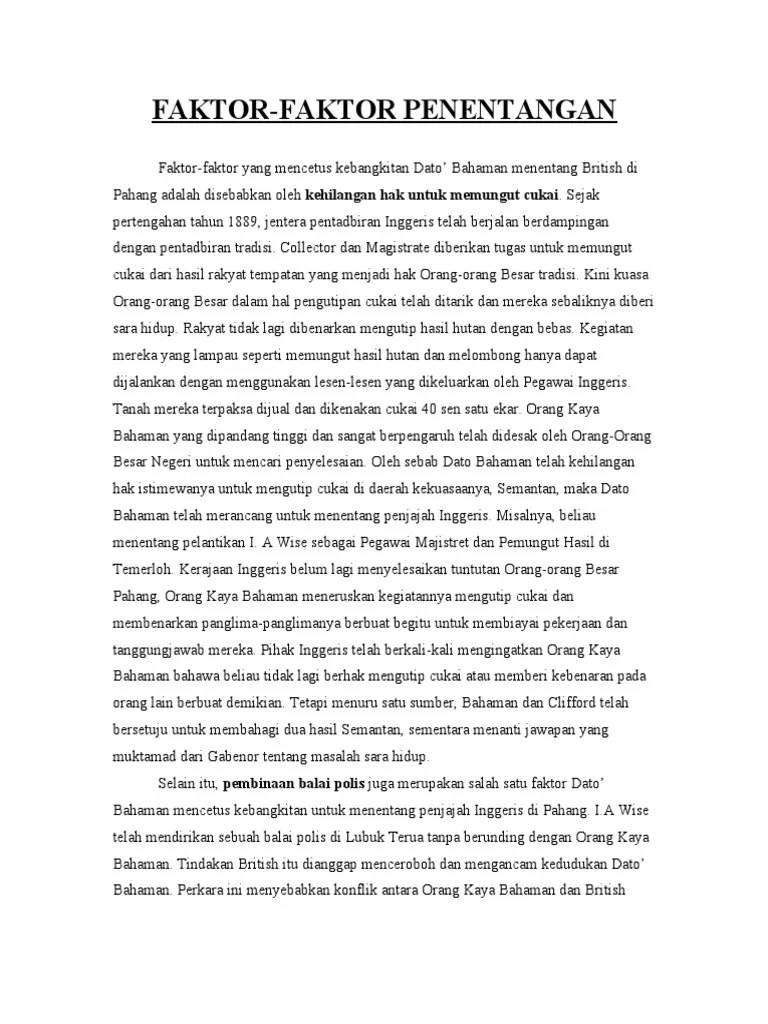 Sebab penentangan dato maharaja lela. Download as docx, pdf, txt or read online from scribd. Faktor penentangan j.w.w birch j.w.w birch 1) mengambil hak mengutip cukai . Faktor penentangan dato maharaja lela mengambil hak mengutip cukai 1 pada 24 julai 1875 birch memaksa sultan abdullah menandatangani . Lela pdf visit full article here : .